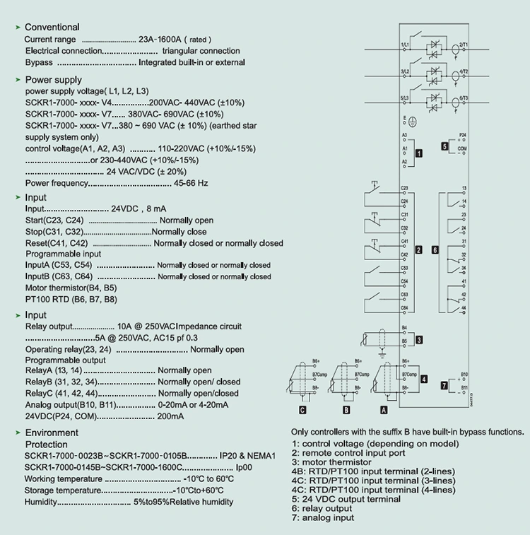 Ainulaadne hädaolukorra funktsioon. Tavalised pehmed starterid ei saa töötada, kui türistori üks etapp on kahjustatud. 7000 -seeria hädaolukordade toimimisfunktsioon võimaldab pehmel starteril endiselt töötada hädaolukorras, kui türistori üks etapp laguneb, vähendades masinakahjustustest põhjustatud majanduslikke kaotusi ja kasutajate väljalülitamist.