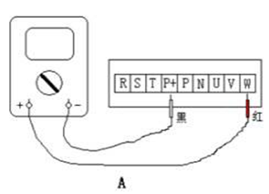 Teiseks puudutage DC -siini positiivset terminali P (+) musta testi pliiga ja puudutage U, V ja W järjestuses punase testi pliiga. Salvestage kuvatud väärtused multimeetril.